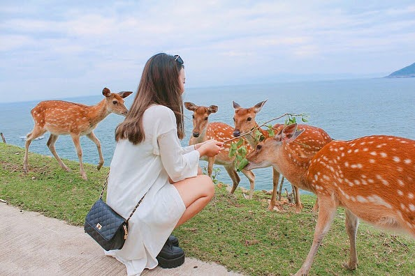 大坵島上隨處可見梅花鹿在山坡奔跑,悠哉的在叢林間散步,甚至不怕人、願意讓遊客親近,但導遊也提醒這裡的梅花鹿雖然溫馴,但還是有野性、長角的公鹿可能會攻擊人,還是保持一點距離比較好唷!