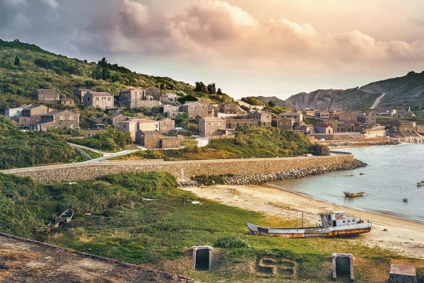 福正曾經是東莒最繁華的村落,但因漁獲量遞減,人口外移,往日的榮景不再,獨留一幢幢殘缺的石屋與後方東犬燈塔相伴,還有仍默默守護村莊的白馬尊王廟。
