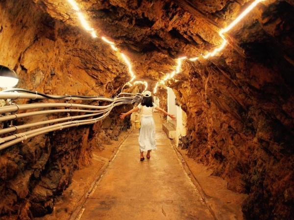 坑道主體由花崗岩構成,相傳是先民躲避海盜的藏身山洞,國軍進駐馬祖後加以鑿高、挖深與強固,闢為戰車坑道,全長200公尺,可容納一個步兵團的兵力,原是中華電信的機房,難怪有滿滿的廠房氣息!