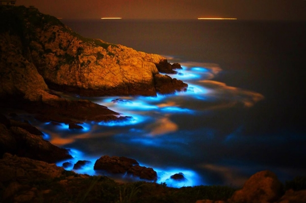 藍眼淚、藍海現象、藍色啤酒海這些名詞都是指向一種夜光蟲-渦鞭毛藻,經過海浪及自然風的驚擾會發出淡藍色的螢光,而數量一多就會滿滿地在海上,這奇幻美景一生一定要來看一次啦!