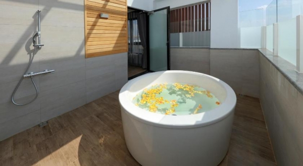 大片的落地窗還有可以欣賞遼闊山海景的陽台,更有露天浴缸,邊泡澡邊享受美景,實在是太浪漫啦!!