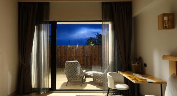 民宿裡的客房都是使用純手工打造的檜木傢俱,還有德國衛浴設備以及浴缸,大片落地窗擁有270度遼闊海景,陽台還有懶骨頭,很適合愜意的欣賞日落晚霞、山景以及海景。