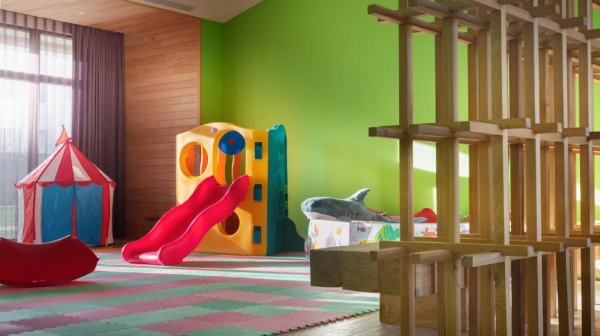 園區內還有小朋友的放電天堂,手足球桌、小屋帳篷等,家長們可以安心地讓小孩來這裡玩,還有原木裝潢設計的餐廳,乾淨又舒適,彷彿就在自家渡假一樣~