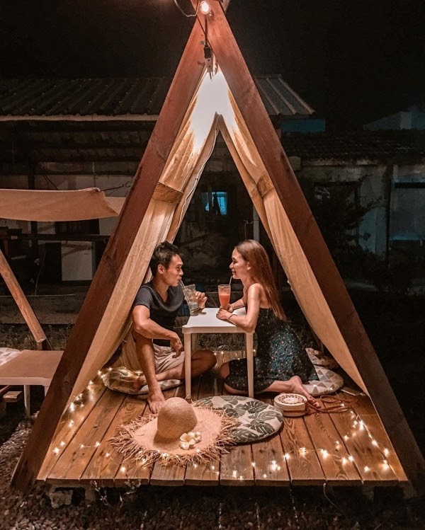 來渡假的夜晚當然要小酌一下啦~這裡有一家很特別的帳棚景點,叫做流浪綠境,連名字都那麼有意境!!原來是一間酒吧~店內不只有賣調酒,也有輕食點心、飲料可以點呦!