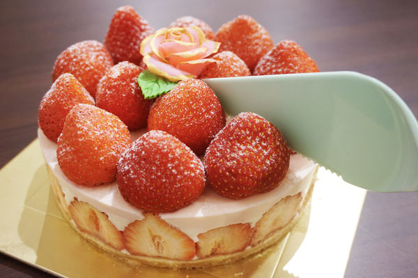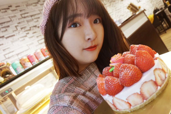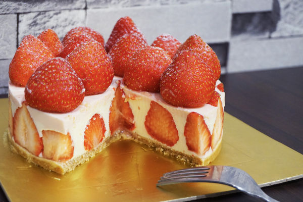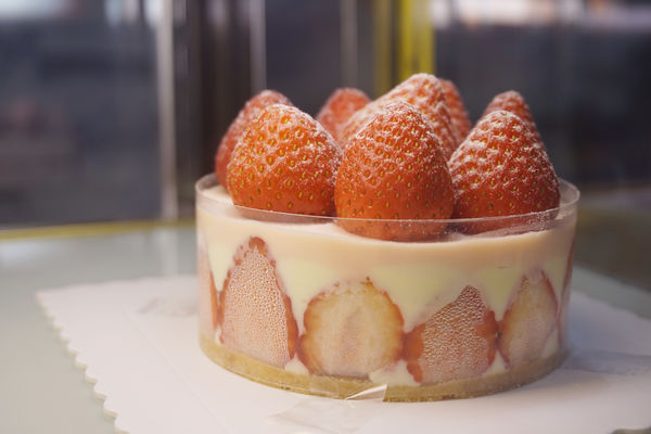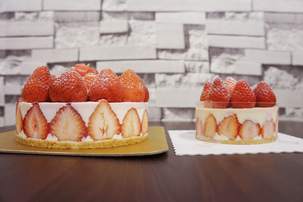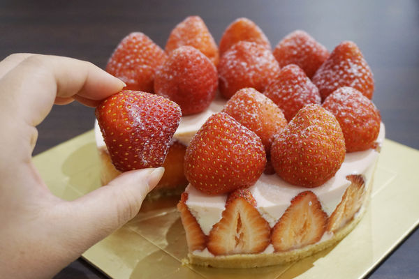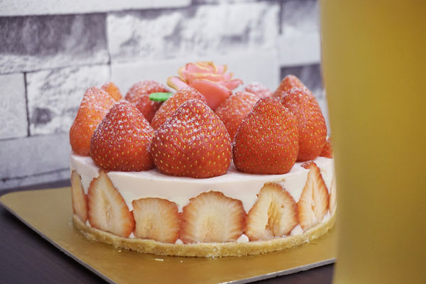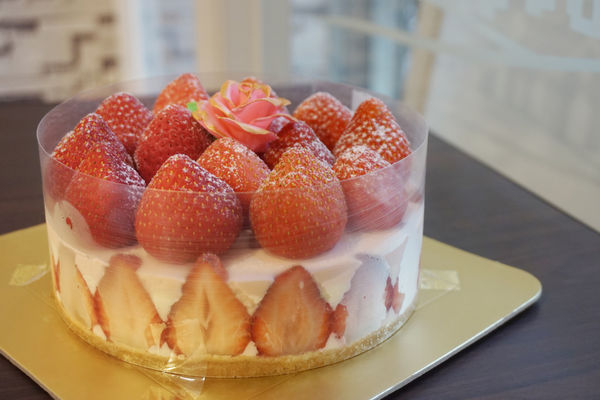 草莓被撲滿在上面,也有一圈鑲在蛋糕的周圍~