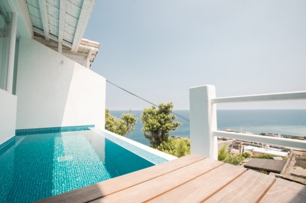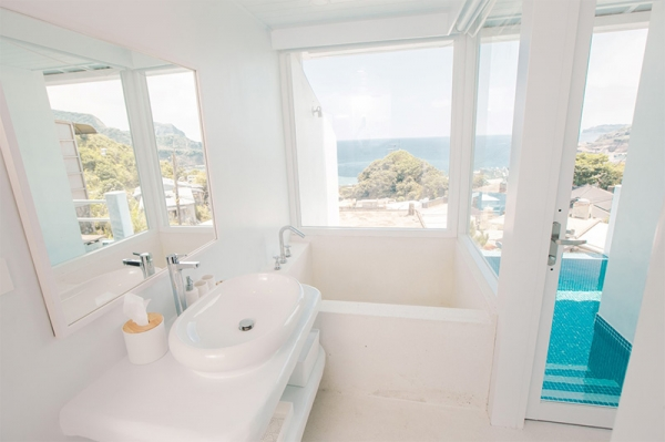 浴室乾淨又舒適,還有獨立浴缸可以泡澡,外頭還有個無邊際泳池,根本人生一大享受啊!