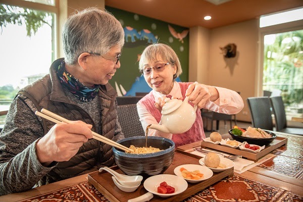 享用在地特色餐點,客家油雞與關西牛肉麵套餐二擇一!主廚特別選用關西老店(1925年創業振興製麵鋪)遵循古法製作的麵條,除了麵粉、鹽和水之外,不添任何人工調料與防腐劑,入口彈牙的咬勁讓人回味。油雞搭配客家桔醬也是關西特產,用在地鮮採的金桔,整顆研磨熬煮成細緻的泥狀,遵循古法不加水、不添加食用色素,微酸口感非常解膩!