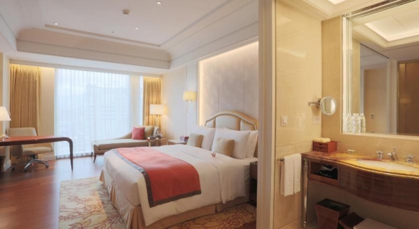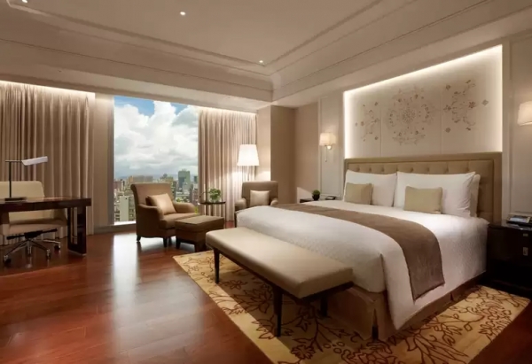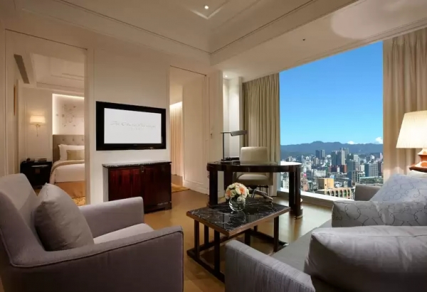 位於15層樓以上的尊榮客房,窗外繁華的台北市景致盡收眼底。