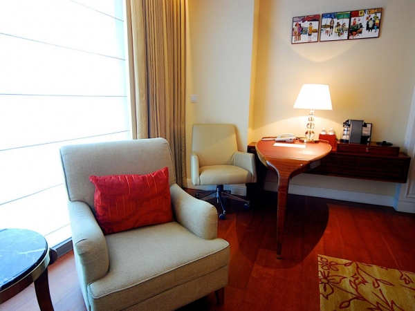 行政客房提供舒適的客廳,為起居聚會的理想之所。衛浴以日式生活機能為概念,浴缸、淋浴區與衛生設備各自獨立,讓旅人的使用面向更寬廣,市區景觀無距離進入眼簾。