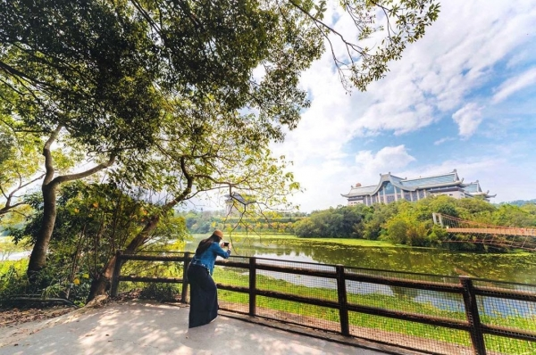 這裡不僅生態豐富,在初夏時更是有雪白桐花、螢火蟲漫天飛舞的美景可以欣賞!走在峨眉湖的環湖步道上,不僅可以從遠方拍攝經典的京都古橋照,連後方建築都是日式道場,是不是超道地!