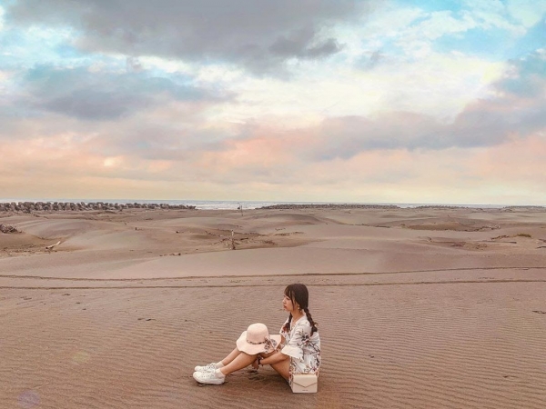 七股頂頭額汕沙洲,是位於台灣極西點國聖燈塔,一旁的大沙洲,因受季風與地形的雙重影響而形成!沙丘上的弧形楞線,柔和曲折、富有層次的立體曲線,引起人們許多浪漫的遐想!
