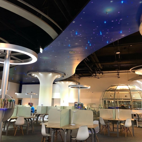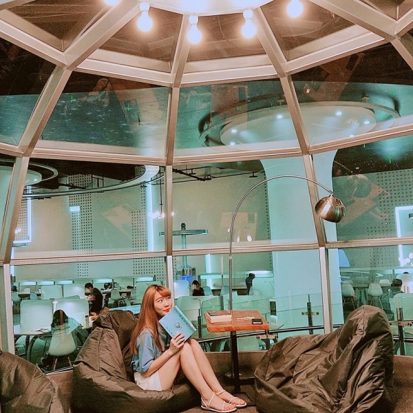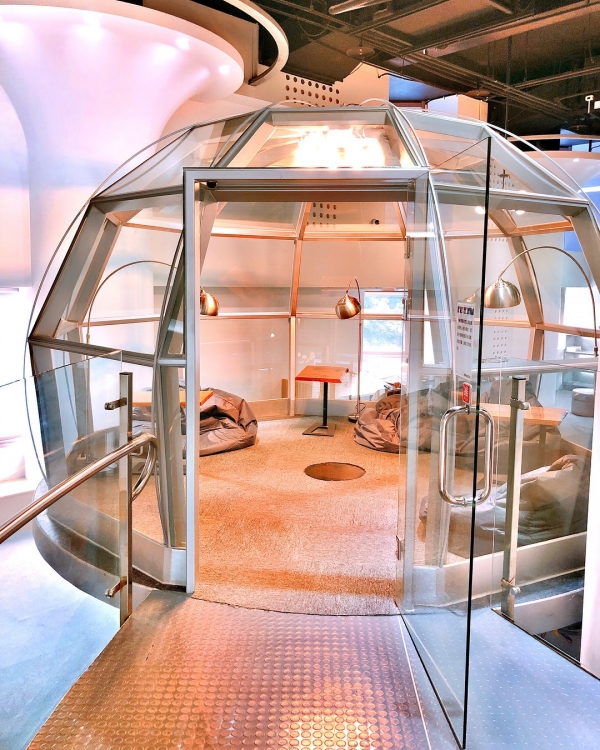 全台最美閱覽室就是這間啦!打破了以往的看書空間,打造了整片宇宙星空,還有兩座透明玻璃屋,讓人一抬頭就能看星星,真的是超級享受耶!