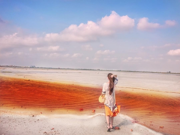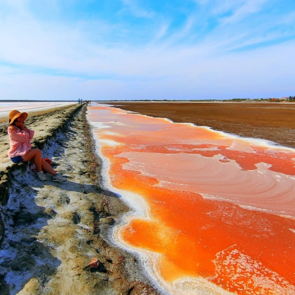 想看彩色鹽灘景觀不用跑去國外,來七股就能目睹這種奇景啦!在頂山的廢棄鹽灘地因海水引入鹽田,久旱不下雨,蓄積的海水長期受陽光照射蒸發所形成,成了高濃度鹵元素水,有的還積聚成鹽!