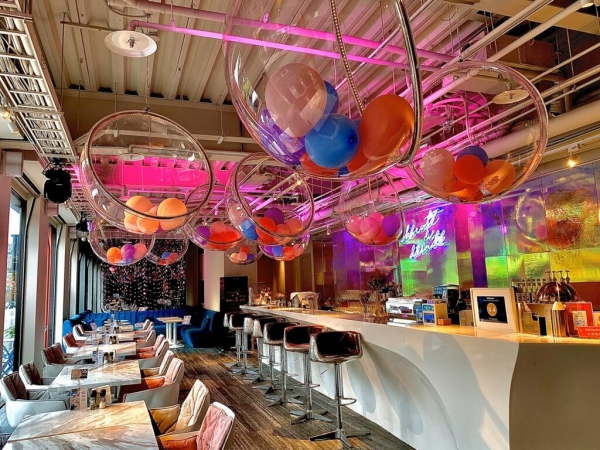不只住宿,現在飯店都有許多設施和裝置藝術,處處可見的空中泡泡可以拍,真的超夢幻的啦!飯店的10樓還設有空中酒吧,夜晚和伴侶在這小酌一杯也是很浪漫!