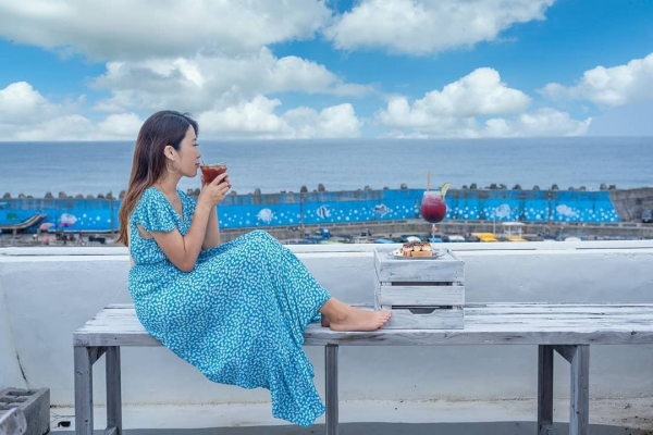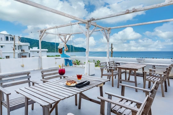 這邊根本台版小希臘!可以悠閒地坐在頂樓平台吹海風,邊喝咖啡邊望無邊際大海,還能坐上純白鞦韆拍拍美照、盡情放空,真是太愜意啦!