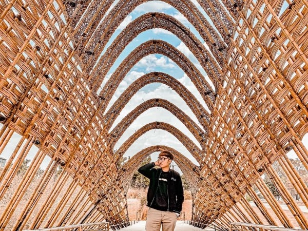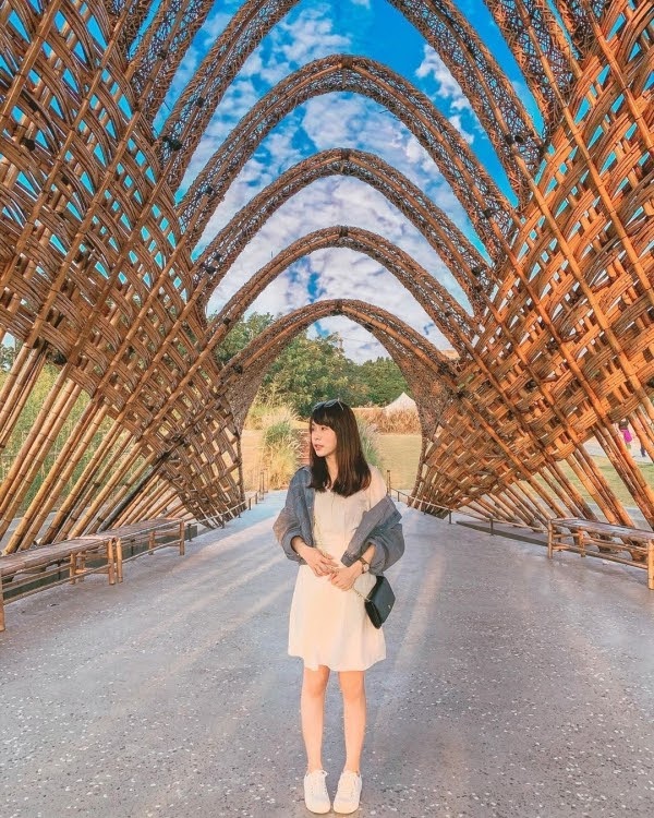位於豐原的「葫蘆墩公園」裡面的竹跡館是一處打卡秘境,以竹林及中央山脈為發想概念,利用台灣本土竹子大大小小橫豎交錯編織,打造出10米高的竹拱圈!