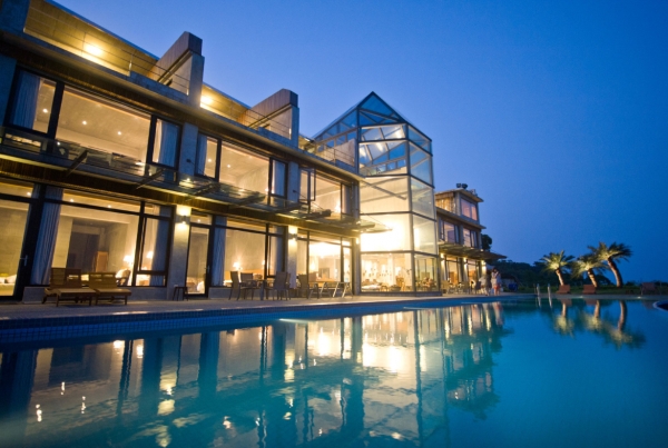 當您走進我們的大門,迎賓池裡的台灣水牛石雕親切的向您問候,挑高的鋼構通透大廳裡,豪邁的毛柿原木長桌絕對是視覺焦點,清水模與粉光牆面簡約清爽,原本山上的老樹,也成了創意家俱的木料。
