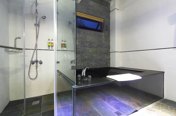 蜻蜓石最頂規的房型,配備Osim天王級按摩椅、紅酒、可樂、Nespresso膠囊咖啡機、台檜木烤箱、半開放式的奢華浴室,一旁的私人樓梯更可直下泳池。