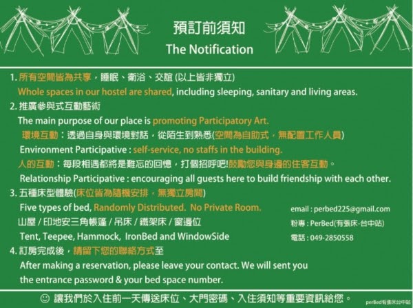 雖然是很自由很開放的空間,但因為是共用的,為了讓大家方便又要顧及公共利益,必須要遵守民宿的規定,小編放在這邊,希望大家在預訂前都可以了解詳細的規則唷!