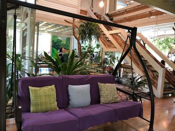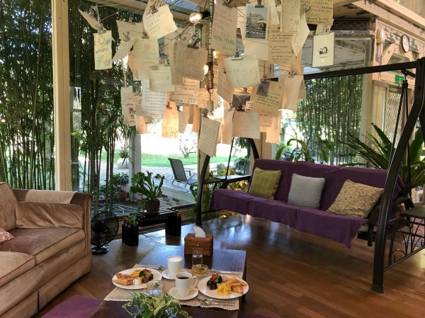 這棟是整個Villa的主棟,而這邊則是接待大廳,也是享用早餐的地方,這燈上吊的都是利用再生紙,客人所留下祝福小語,大家都超愛這座世外桃源,果然受到不少客人的愛戴啊!