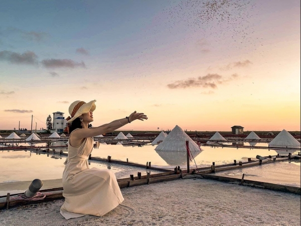 臺灣現存歷史最悠久的鹽田。每日夕陽照射在瓦盤鹽田上倒映天空的美麗光彩,搭配北門潟湖一望無際的天際線跟雲彩,讓鹽田邊總是擺滿了攝影腳架,賞景的遊客更是絡繹不絕!