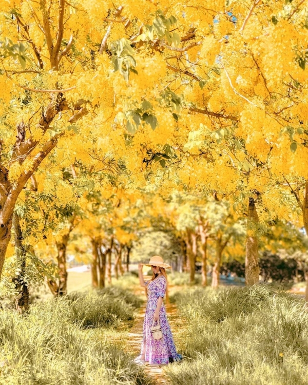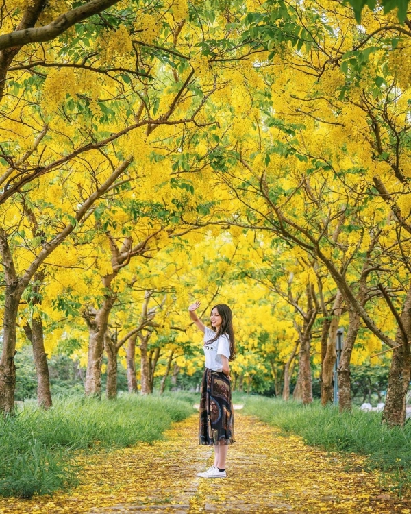 曾文堤防處種滿阿勃勒大樹,樹上垂落的花瀑浪漫滿開,形成一幅必拍美景。色彩鮮艷的黃金雨,曝光後一夕成為熱門打卡景點,也被稱為最美的阿勃勒隧道!