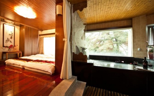 180度神木庭園景觀房,Queen Size雙人床附單人溫泉浴缸,浴後神清氣爽,可紓緩壓力、消除疲勞!