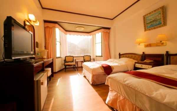 臨大甲溪畔景觀房,兩張單床附單人溫泉氣泡按摩浴缸,浴後神清氣爽,可紓緩壓力、消除疲勞~