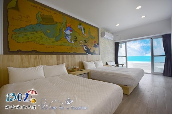 1302海景房最棒的就是,打開窗門就能聽到海的聲音,有獨立陽台可以直擊日昇日落海景,其中vip房型還有獨立泳池,如果玩玩海水回來,還可以再換上泳衣繼續再民宿裡玩水喔!!