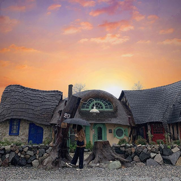 在花蓮的Mr. Sam 山姆蘑菇咖啡館,位於公路的旁邊,外觀是三間連在一起的建築物,美間的屋頂都超可愛,附近多處叢林還有夢幻的小湖,為童話小屋增添一種神祕的氣息,彷彿好像進入另一世界。