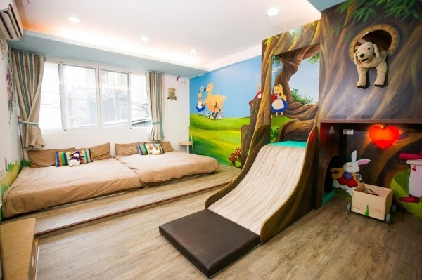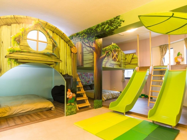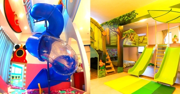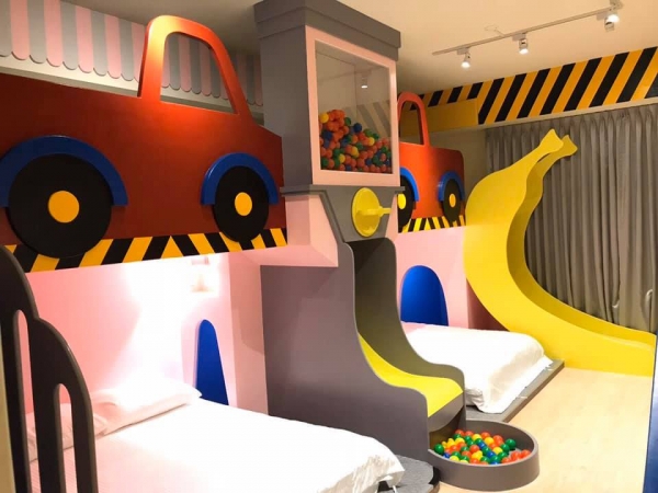 每間房間都有溜滑梯設施,部分房型更設有盪鞦韆,一定可以讓小孩們超!開!心!