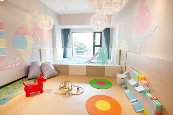 這粉嫩嫩的別說是小孩了,就連小編看了都覺得太喜歡啦!簡約乾淨的遊戲空間,暖色調的配置能讓親子在這裡留下一段甜蜜的回憶!