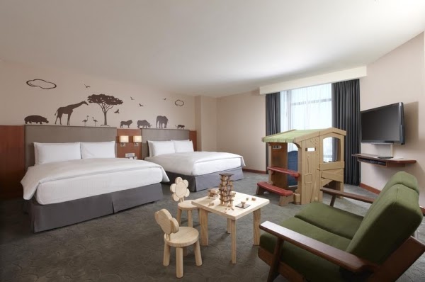 這裡還有一個相當加分的服務,就是專為毛小孩設計的寵物室,可以帶著寵物一起出門旅行、不用擔心住宿的問題!頂樓還有空中酒吧,在這裡小酌一杯、看看夜景,也是讓父母享受旅程的一個超棒地點!