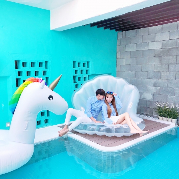 位於恆春老街巷弄中的「曲境Villa」擁有舒適寬敞的空間,搭配超狂樓中樓設計,還有半露天泳池、水上鞦韆,甚至店家還有提供各種造型泳圈可以租借拍照,讓人每分每秒都像在海島度假!