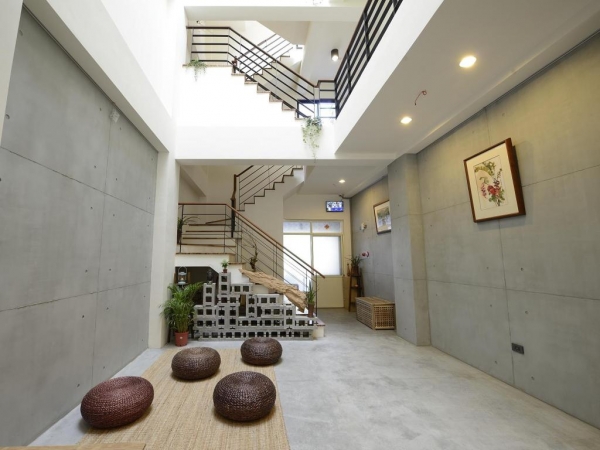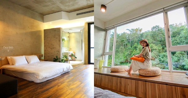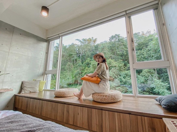 山慕藝旅雖然外表看起來並不起眼,卻是一對夫妻回鄉將921大地震後拆掉的舊房子重建起來的家,全棟建築堅持不用油漆也不貼’任何磁磚,簡約的清水模設計非常有質感,更與周邊的山景完美融合。
