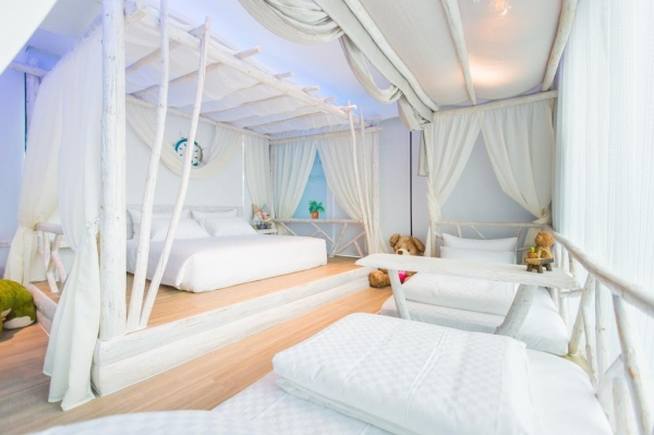 外觀看起來像座小白宮的純白建築,有著濃濃的歐洲貴族感,彷彿王子和公主才能入住的美麗城堡!而且門口還有一台超夢幻的南瓜馬車,完全是公主的最愛!位於頂樓的玻璃屋房型則是擁有相當遼闊的景觀以及透明天花板,晚上躺在床上就能看星星!