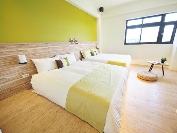 再來看看客房的部分,房型多樣化有雙人也有四人房,而且每個房間都有主題顏色,紫色超有質感的,黃綠色系則是有相當活潑的感覺,四人房還可以當成親子房,直接在木地板玩耍!