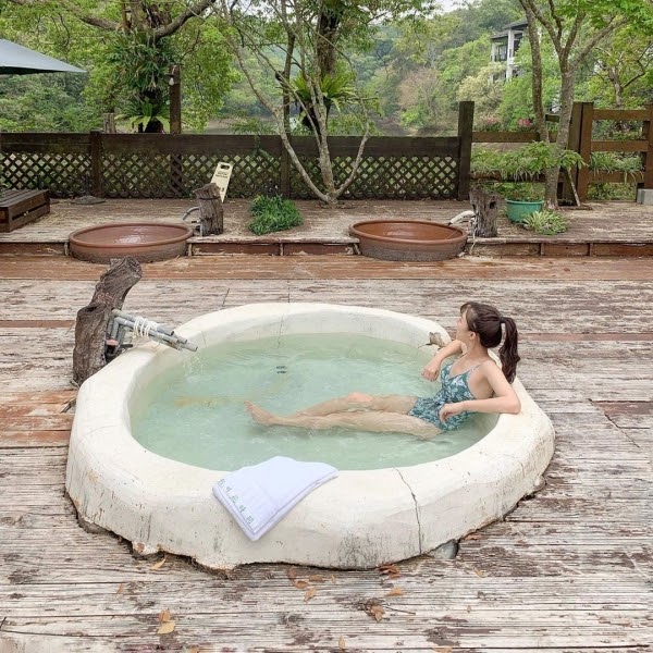 坐落於大湖山林裡,是一間溫泉會館,不僅可以坐擁山嵐雲霧、享受湖光山色,還能觀星賞螢!最吸睛的是這個原石打造的特色湯池,貼近大自然的設計風格,讓你在樹蔭下花叢邊,輕鬆自在的泡在純淨湯泉裡!