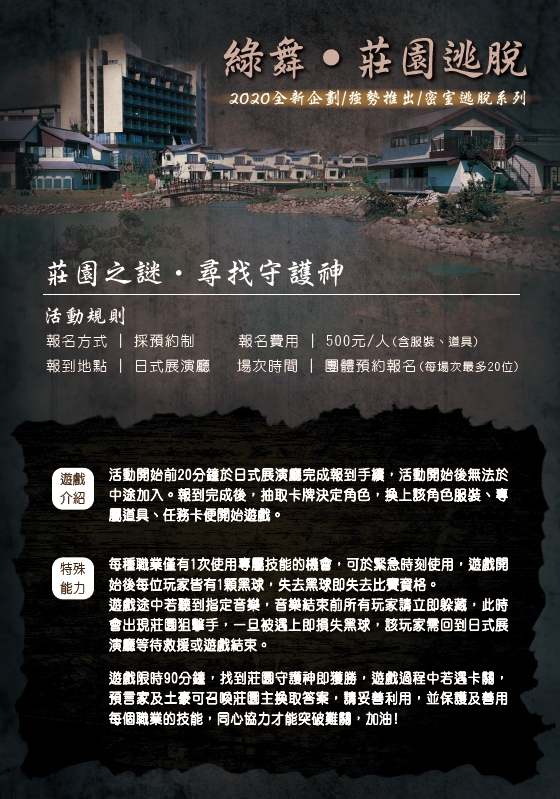 如果只打算輕鬆採點的旅客,推薦「樂遊一夏親子閨蜜行」住房專案,雙人客房每房6290元起,皆有附上翌日早餐、【經典浴衣】及【抹茶體驗】課程,即日起至8/31前入住,還能免費體驗【輿神同行】及【忍者之森】體驗營。