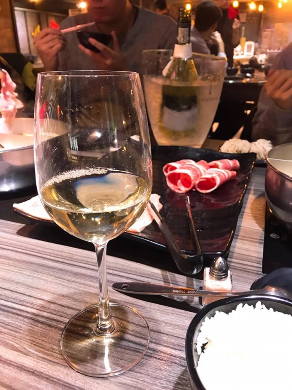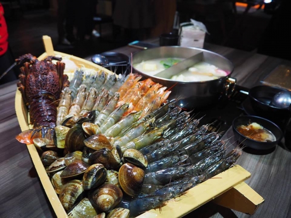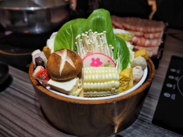雙人用餐的話,鍋子都是以 鴛鴦鍋 的形式供客人涮煮,如果像我們一樣兩邊都選原味昆布湯頭,就可以把兩邊個別分成煮肉片跟煮海鮮的,最後煮出來的湯頭色澤會完全不同,喝起來也會是不同的甜度。