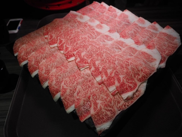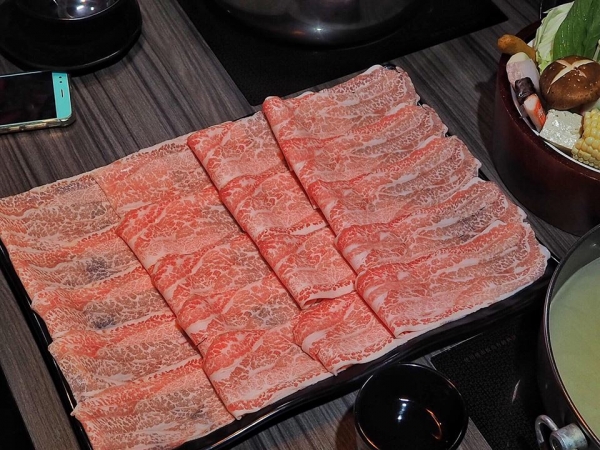 ▲日本A5特級霜降和牛大理石紋的油花在燈光下閃耀,輕涮五秒轉成淡淡淺粉紅的夢幻顏色,再輕灑上店家提供的玫瑰海鹽,銷魂的口感讓人飛上天,油脂豐富的滑嫩度,真的吃幾片就覺得很滿足,建議多人分食、分享幸福。