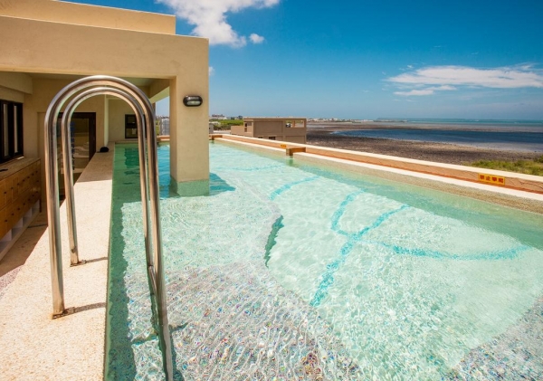 民宿主人打造這間旅店用北非風的高挑門扇,還有圖騰式的壁花磚裝潢,從房間到浴室都很有味道!來渡假當然不可錯過的就是綠洲旅店的頂樓泳池,在炎炎夏日為了避暑,來到清涼的泳池沖涼一下,傍晚時也可坐在池畔吹吹海風,在小酌一杯放鬆!