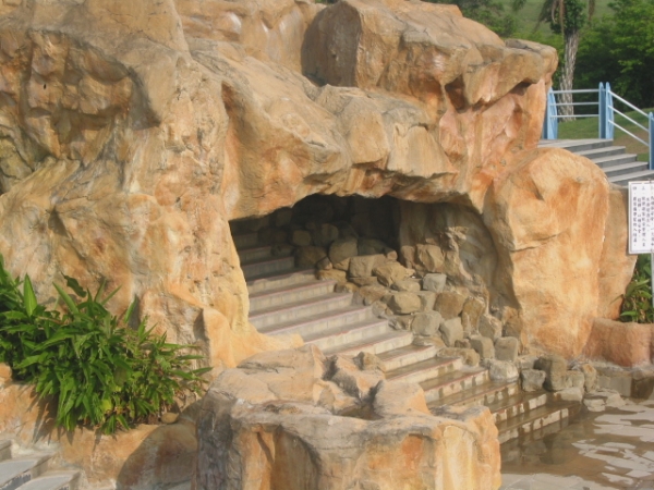 設置仿石洞隧道,隧道內有水簾幕以及類似侏儸紀石洞探險之感。