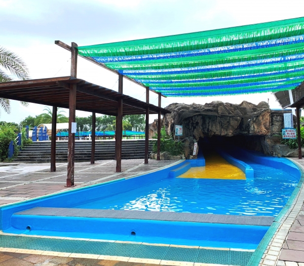 烏山頭親水公園於每年的4月皆會盛大開放,今年因為疫情延後到7月,好不容易大解禁,就是要大玩一波啦~親水公園內設有兒童溜滑梯、兒童戲水池等遊戲設施,雨林瀑布區、恐龍隧道、蘑菇區還有一座滑水道,高空滑水道僅假日開放,大型游泳池需滿130公分以上,穿著泳衣與泳帽才能入內。