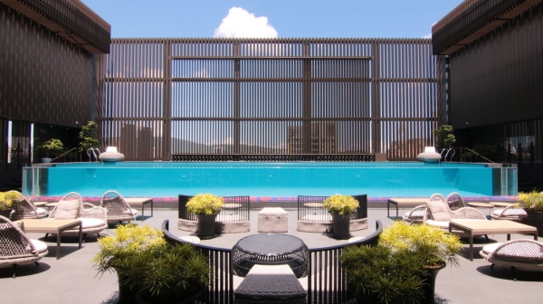 最吸睛的就是這邊擁有高雄唯一的頂樓泳池酒吧,超浮誇的「透明水族箱」泳池是網美的最愛,池邊擁有500吋大螢幕,帶給您極具風格、炫目迷人的都會夜晚新據點,愜意的品嚐精緻的輕食及飲品,盡情享受度假風情,入住期間千萬不要錯過啊!