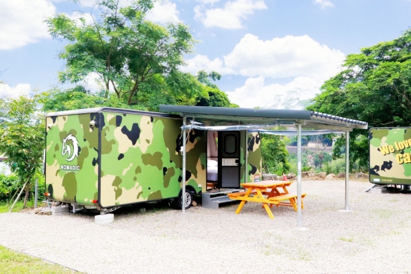 威尼斯溫泉露營地最大亮點,除了溫泉與露營主題外,更擁有全台唯一美國進口的美式拖車可以體驗,美式拖車所提供的是另一種不同的宿營樂趣,讓人露營時可享受到像在家一樣的舒適感與便利性。