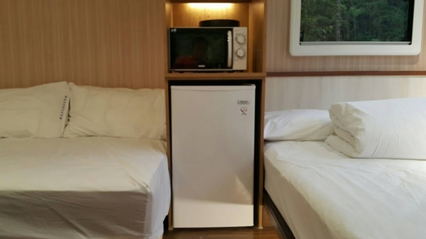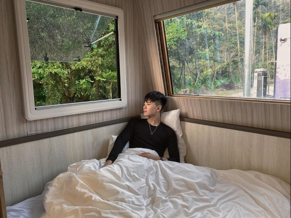 露營車好處就是床旁都會設有大片窗戶,方便觀看外面的景象,夜晚也可看星星喔~