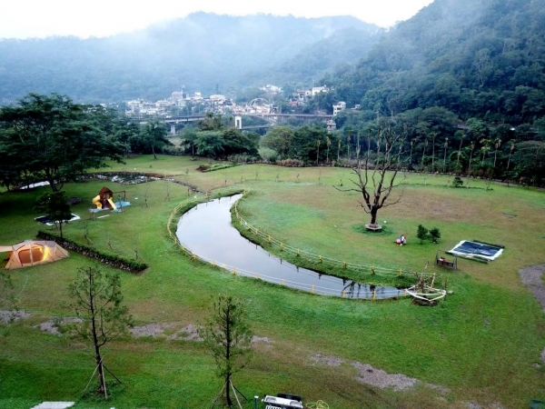 營區中有一大新月形生態池,近看可以看到一些小魚小蝦喔~也有設置兒童戲水池以及溜滑梯!!是個很適合親子露營的地方!!