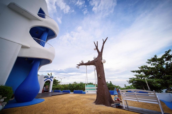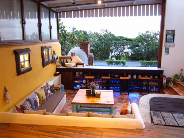 位在台11線上鹽寮海邊的一棟藍白色調特色民宿,雖為希臘風色調,卻是西班牙式的建築設計,吸睛程度爆表,外觀特殊到讓人以為來到異世界,是由一對來自台北的退休夫婦設立,原本打算給自己住,沒想到越來越多人來詢問,後來在2009年開放4間房型給旅客居住!