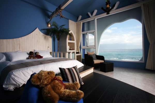 男孩的金銀島、女孩的夢幻仙境,都在大海的另一端;乘風破浪的冒險,成為了美麗的故事,在這天,重拾發現的驚喜旅程。巨大的觀海景窗,絕對是這間房間的重點,藍白色調也給人心情放鬆了不少!